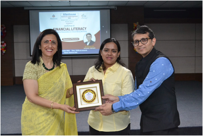 On October 10, 2023, Allenhouse Institute of Management hosted an enlightening workshop titled “Building Your Financial Muscle: A Smart Money Workshop.” This session was designed to enhance students’ understanding of essential financial concepts and to equip them with practical skills for managing their finances effectively.The session was conducted by two distinguished experts: Mr. Gaurav Jain and CA Vasudha Jain, Co-Founders of IndyCapital. Their combined expertise in finance and investment offered attendees a comprehensive view of smart money management and financial planning.